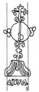 DescripciónRelicario con un puñal inscripto en el ostentorio. En la base apellido del fabricante