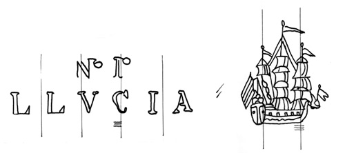 DescripciónUna carabela, izquierda nº1 y apellido del fabricante.
