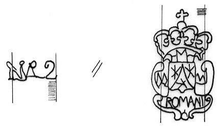 DescripciónEscudo carmelita con iniciales y apellido del fabricante en ela base. Izquierda nº 2
