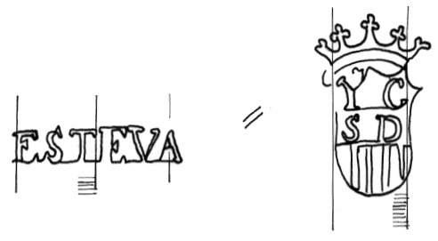 DescripciónEscudo coronado con iniciales sobre barras. A la izquierda apellido del fabricante.