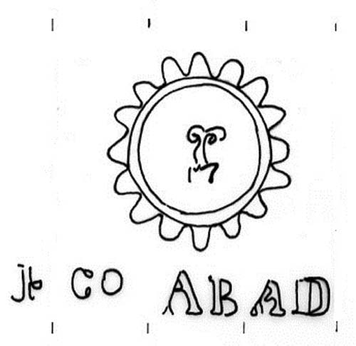 | Número - Codigo | B0976 - U. Figuras geométricas | | Codigo2 | W. Nombres, apellidos, topónimos y palabras | | Descripción | Doble círculo con serpentina, cara en el campo y en la base iniciales y apellido del fabricante. | | Iniciales | -- | | Dimensión | 67/85 | | Distancia corondeles | 24/25/24 mm. | | Puntizones | -- | | Corondeles portadores | 3 | | Fabricante | Abad, Francisco | | Lugar | Alcoy - Alicante | | Depositario | A.H.P.M. - Archivo Histórico Provincial de Málaga (España) | | Tipo documento | Manuscrito | | Autor | Rafael de Guevara | | Título | Protocolo | | Impresor | -- | | Lugar impresion | -- | | Legajo | P.4769 | | Folio | 378 | | Dimensiones doc. | A 316/ An 430 | | Espesor papel | E 0,10 | | Procedencia | Mijas - Málaga | | Fecha documento | 1803 | | | | | n  | | | | |
