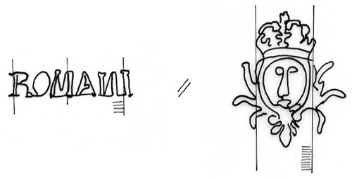 DescripciónEscudo con cara en el campo, izquierda apellido del fabricante.