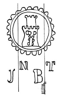 | Número - Codigo | B0990 - K. Estructuras arquitectónicas | | Codigo2 | W. Nombres, apellidos, topónimos y palabras | | Descripción | Torre de dos tramos inscrita en un triple círculo el exterior en serpentina, en la base abreviaturas del fabricante. | | Iniciales | -- | | Dimensión | 69/45 | | Distancia corondeles | 24 mm. | | Puntizones | 10 | | Corondeles portadores | 2 | | Fabricante | Boronat, Juan | | Lugar | Alcoy - Alicante | | Depositario | A.H.P.M. - Archivo Histórico Provincial de Málaga (España) | | Tipo documento | Manuscrito | | Autor | Rafael de Guevara | | Título | Protocolo | | Impresor | -- | | Lugar impresion | -- | | Legajo | P.4732 | | Folio | 443/479 | | Dimensiones doc. | A 310/ An 213 | | Espesor papel | E 0,10 | | Procedencia | Nerja - Málaga | | Fecha documento | 1806 | | | | | n  | | | | |