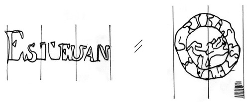 DescripciónDoble círculo con letras ilegibles, izquierda apellido del fabricante.