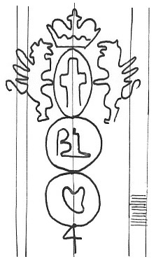 DescripciónEscudo de Génova sobre dos círculos. 1º iniciales.2º un corazón. Al pie número.