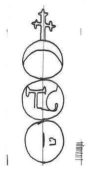 DescripciónTres círculos surmontados por una cruz. En el 1º una media luna, 2ª iniciales.