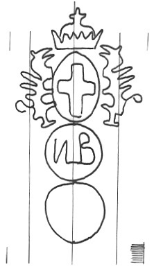 DescripciónEscudo de Génova sobre dos círculos 1º con iniciales.