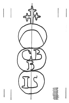 DescripciónTres círculos surmontados por una cruz. En el 1º una media luna, 2ª y 3º iniciales.