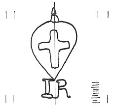 DescripciónUna cruz surmontada por una inicial. Dentro un corazón o escudo. Al pie iniciales.