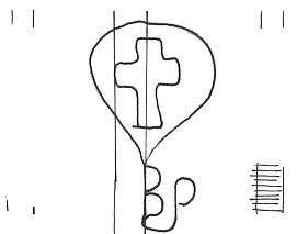 DescripciónUna cruz dentro de un corazón o escudo. Al pie iniciales.