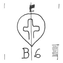 DescripciónUna cruz dentro de un corazón o escudo. Al pie iniciales.