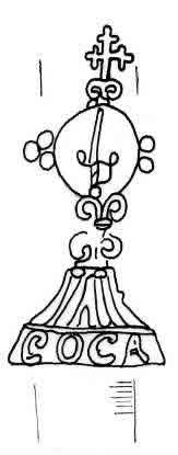 DescripciónRelicario con un puñal inscrito en el ostentorio. En la cartela el apellido del fabricante.