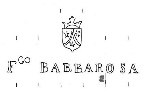 DescripciónEscudo carmelita, en la base avreviatura del nombre y apellido del fabricante.