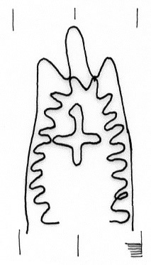 DescripciónCruz dentro de una forma indefinida.