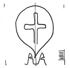 DescripciónUna cruz dentro de un corazón o escudo. Al pie iniciales.