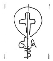 DescripciónUna cruz dentro de un corazón o escudo. Al pie iniciales.