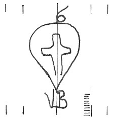 DescripciónUna cruz surmontada por una inicial. Dentro un corazón o escudo. Al pie iniciales.