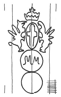 DescripciónEscudo de Génova sobre dos círculos. 1º iniciales.