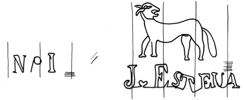 | Número - Codigo | B1815 - C. Mamíferos | | Codigo2 | W. Nombres, apellidos, topónimos y palabras | | Descripción | Un perro mirando hacia atrás, al pie Inicial y nombre del fabricante. Nº 1. | | Iniciales | -- | | Dimensión | 14/32 = 60/82 | | Distancia corondeles | 23/22 = 21/21/22 mm. | | Puntizones | 12 = 12 | | Fabricante | Esteva, J. | | Lugar | La Riba - Tarragona | | Depositario | A.H.P.M. - Archivo Histórico Provincial de Málaga (España) | | Tipo documento | Manuscrito | | Autor | Fernando Galmes | | Título | Protocolo | | Impresor | -- | | Lugar impresion | -- | | Legajo | 3810 | | Folio | 287/288 | | Dimensiones doc. | A 316/ An 430 | | Espesor papel | E 0,09 | | Procedencia | Málaga | | Fecha documento | 1815 | | | | | n  | | | | |