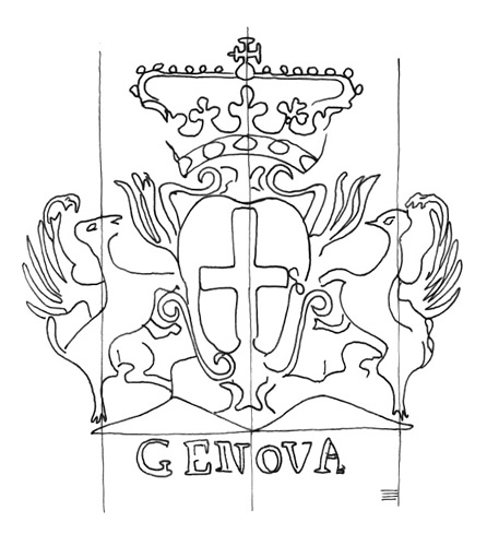 DescripciónEscudo de Génova.Al pie Topónimo.