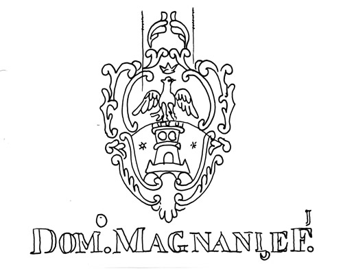 | Número - Codigo | B1877 - T. Flor de Lis. Emblemas heráldicos y escudos | | Codigo2 | W. Nombres, apellidos, topónimos y palabras | | Descripción | Escudo formado por filetes simples y ornamentados, en el cuerpo hay una torrre, sobre tres montes, con dos estrellas en los laterales, surmontado por un águila con alas extendidas y coronada. Al pie Nombre y apellido del fabricante con abreviaciones. | | Iniciales | -- | | Dimensión | 135/157 | | Distancia corondeles | 28 mm. | | Puntizones | -- | | Corondeles portadores | 2 | | Fabricante | Magnani e Figli, Domenico | | Lugar | Pescia - Italia | | Depositario | A.G.N.A. - Archivo General de la Nación Argentina | | Tipo documento | -- | | Autor | -- | | Título | -- | | Impresor | -- | | Lugar impresion | -- | | Legajo | -- | | Folio | Blanca | | Dimensiones doc. | A 316/ An 218 | | Espesor papel | E --- | | Procedencia | Buenos Aires | | Fecha documento | -- | | | | | n  | | | | |