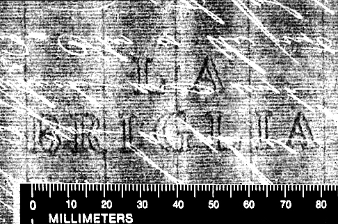 DATE: June 7, 1808 WATERMARK INFORMATION: PRIMARY: NamesWords (IPH KEY: Y) DIMENSIONS: 80 mm high x 26 mm wide SECONDARY: “LA | BRIGLIA” PROCESS: DYLUX PAPER INFORMATION: MANUFACTURE: Laid CHAINS: 19-20 ARTIFACT INFORMATION: ARTIFACT: Letter YEAR OF USE: 1808 Savannah, Georgia, United States REPOSITORY: Library of Congress SHELFMARK: Box 64, #31531 DATABASE INFORMATION: RECORD ADDED: 25 January 2008 NO. 4285 GENERAL COMMENTS: Thomas Jefferson, General Correspondence. |
