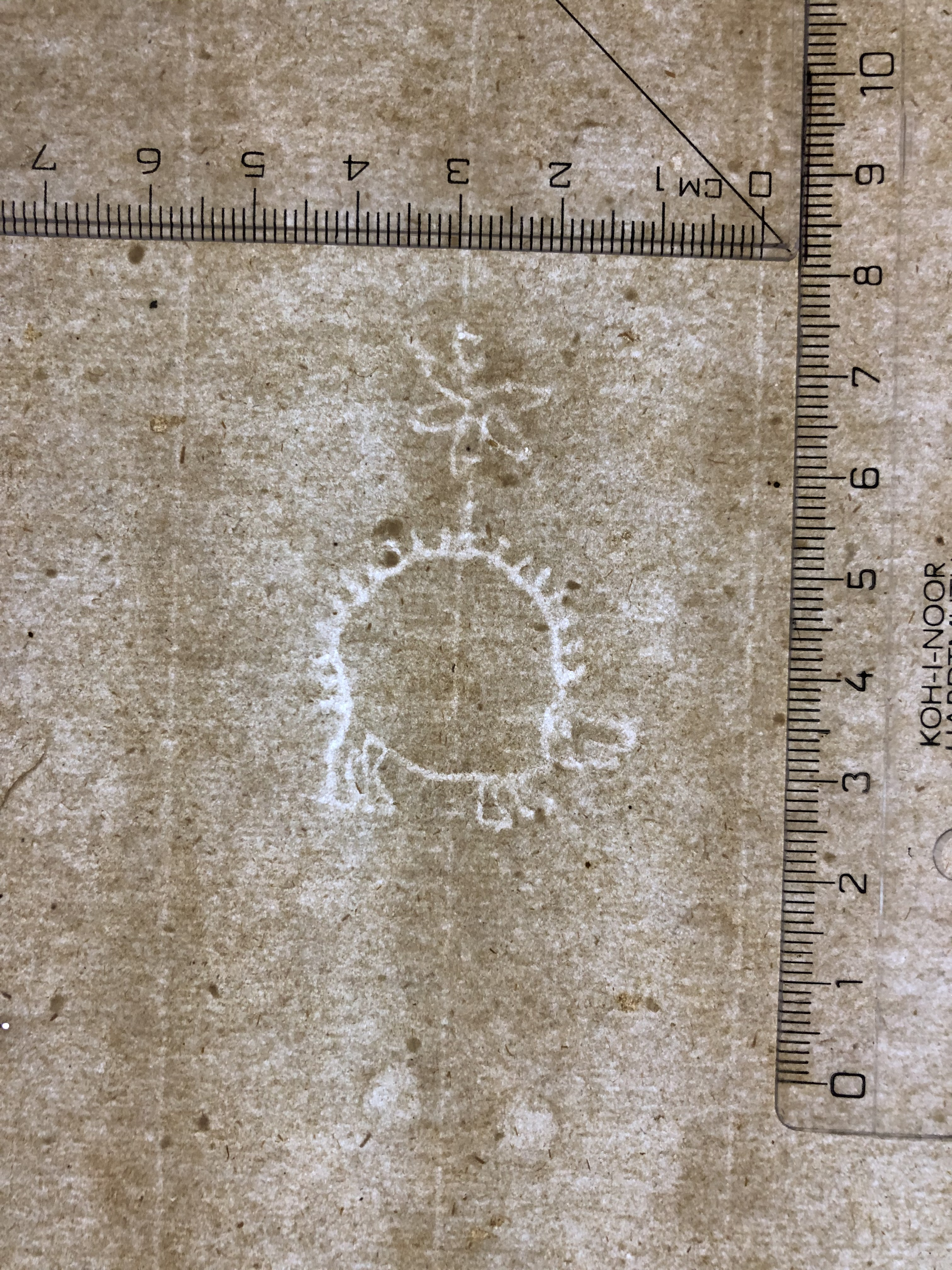 Identifier: 148_I Description: hedgehog, six-leaf flower Height: 50 Width: 32 Chain line distance: 28 No. chain lines in sheet: 14 Depository: Státní okresní archiv (SOkA) Jihlava Shelfmark: AMJ do 1848, ÚKaR, inv.n. 341 Source: Czech Copybook Dating: 1598 Paper mill: Staré Hory, Jihlava? Placement: a Sheet dimension (cm): 30x40