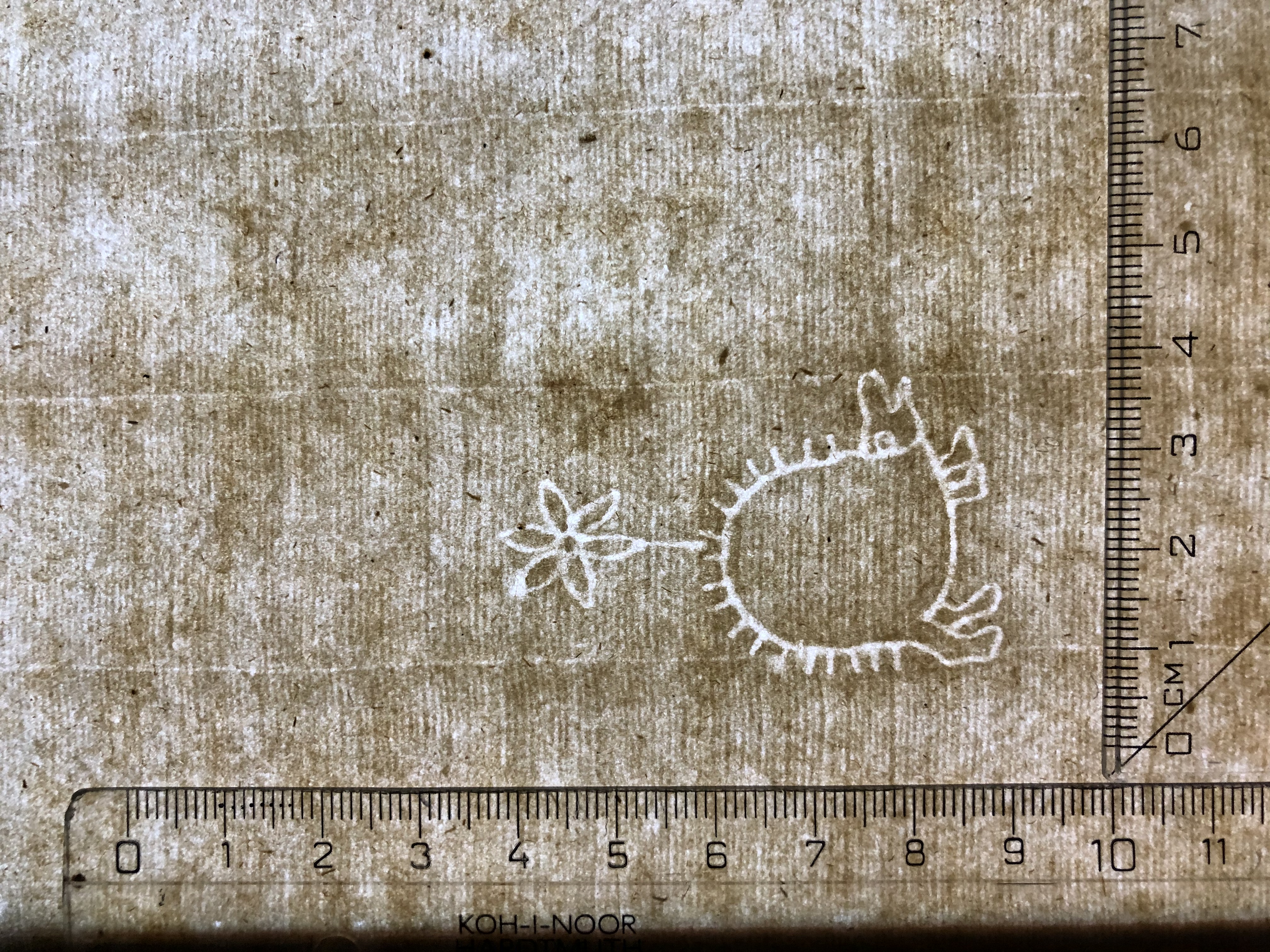 Identifier: 149_II Description: hedgehog, six-leaf flower Height: 50 Width: 30 Chain line distance: 28 No. chain lines in sheet: 14 Depository: Státní okresní archiv (SOkA) Jihlava Shelfmark: AMJ do 1848, ÚKaR, inv.n. 341 Source: Czech Copybook Dating: 1597 Paper mill: Staré Hory, Jihlava? Placement: a Sheet dimension (cm): 30x40