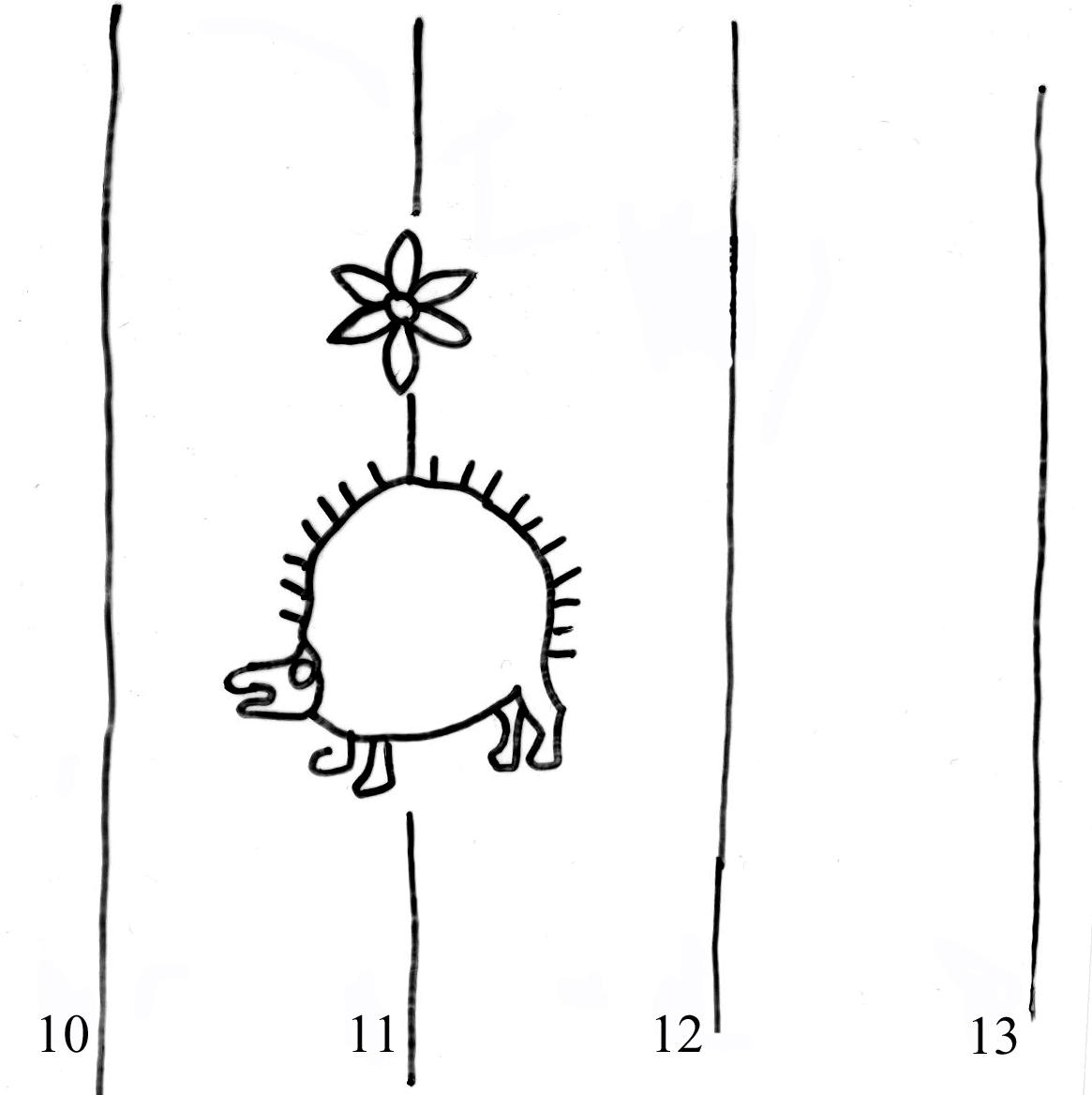 Identifier: 150_I Description: hedgehog, six-leaf flower Height: 52 Width: 31 Chain line distance: 28 No. chain lines in sheet: 14+2 Distance side wire-chain line: 14 Depository: Státní okresní archiv (SOkA) Jihlava Shelfmark: AMJ do 1848, ÚKaR, inv.n. 341 Source: Czech Copybook Dating: 1600 Paper mill: Staré Hory, Jihlava? Placement: a Sheet dimension (cm): 30x40