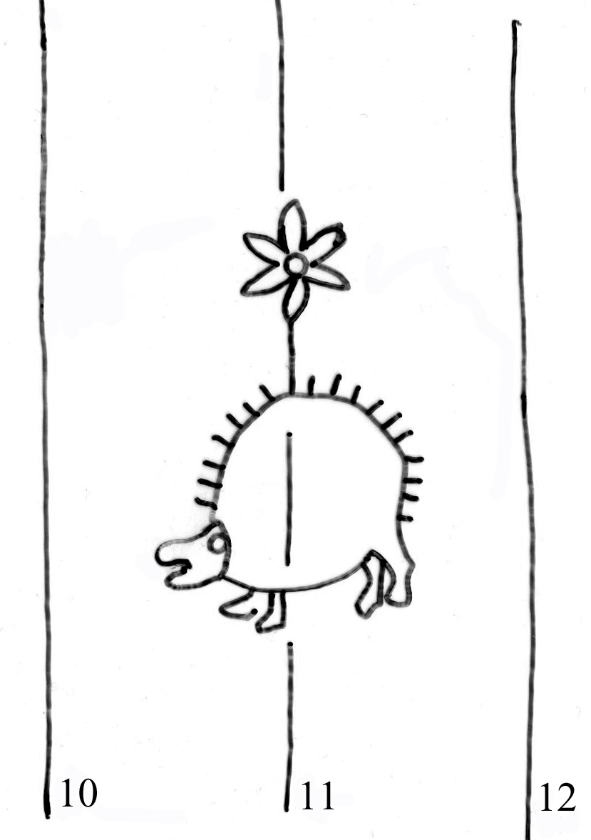 Identifier: 151_II Description: hedgehog, six-leaf flower Height: 52 Width: 31 Chain line distance: 28 No. chain lines in sheet: 14 Depository: Státní okresní archiv (SOkA) Jihlava Shelfmark: AMJ do 1848, ÚKaR, inv.n. 341 Source: Czech Copybook Dating: 1602 Paper mill: Staré Hory, Jihlava? Placement: a Sheet dimension (cm): 30x40