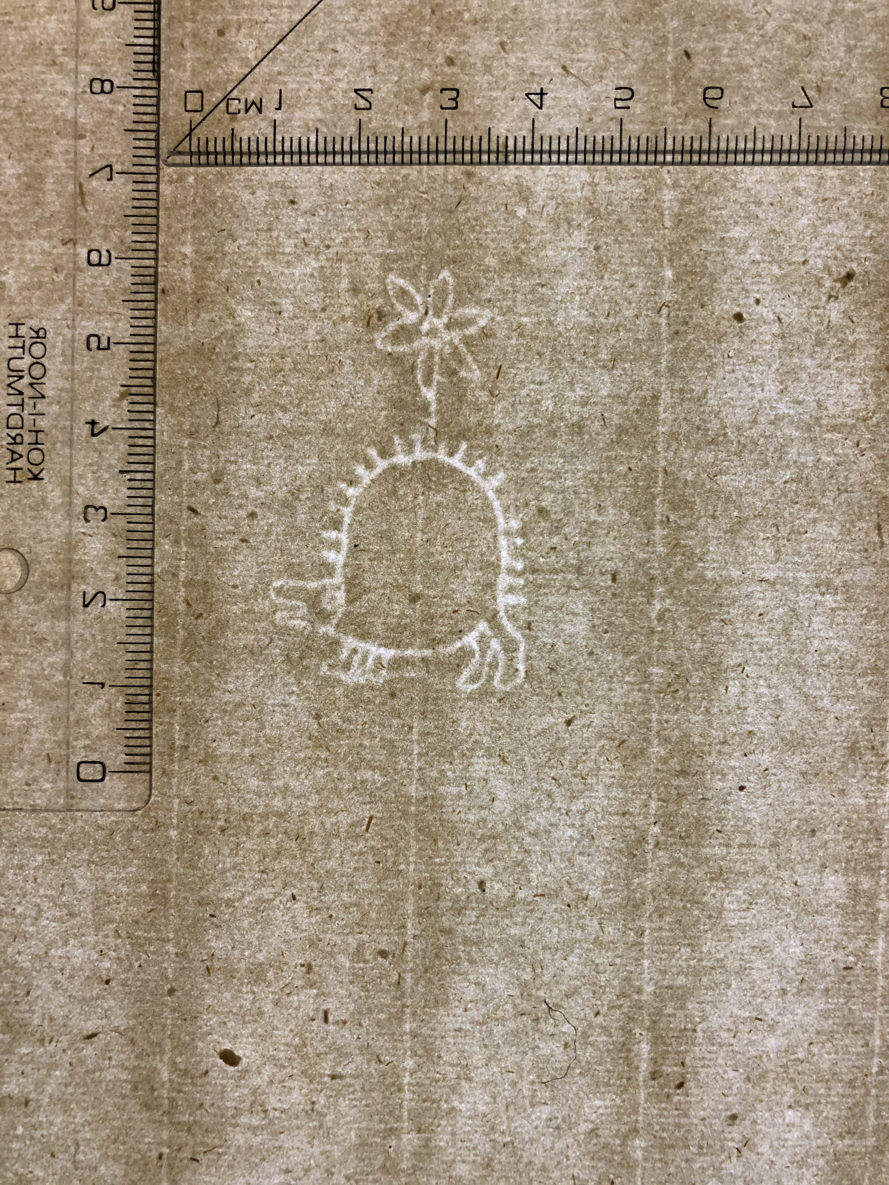Identifier: 152_II Description: hedgehog, six-leaf flower Height: 49 Width: 31 Chain line distance: 28 No. chain lines in sheet: 14 Depository: Státní okresní archiv (SOkA) Jihlava Shelfmark: AMJ do 1848, ÚKaR, inv.n. 341 Source: Czech Copybook Dating: 1603 Paper mill: Staré Hory, Jihlava? Placement: a Sheet dimension (cm): 30x40