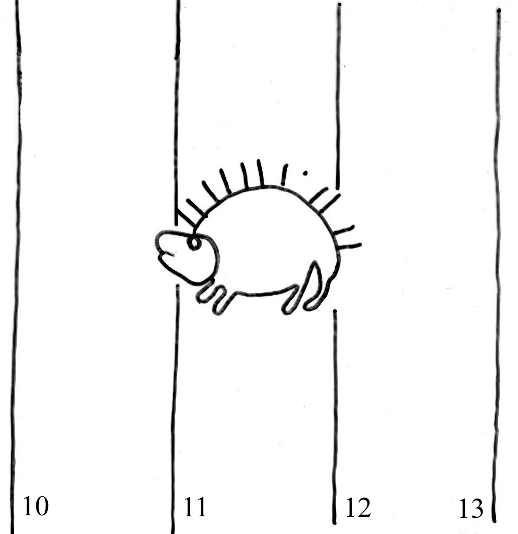 Identifier: 155 Description: hedgehog Height: 28 Width: 35 Chain line distance: 27 No. chain lines in sheet: 14+2 Distance side wire-chain line: 16 Depository: Státní okresní archiv (SOkA) Jihlava Shelfmark: AMJ do 1848, ÚKaR, inv.n. 337 Source: Czech Copybook Dating: 1574 Sheet dimension (cm): 31x42