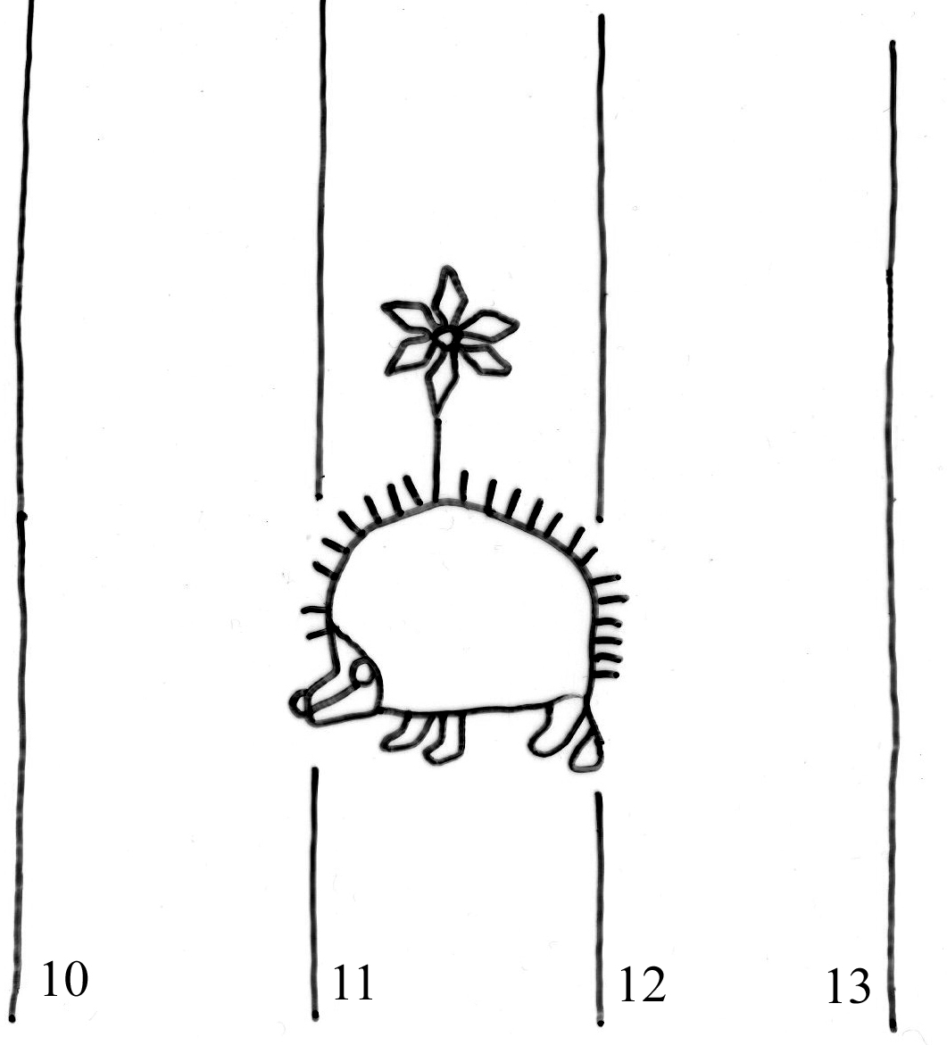 Identifier: 157_I Description: hedgehog, six-leaf flower Height: 47 Width: 32 Chain line distance: 28 No. chain lines in sheet: 14+2 Distance side wire-chain line: 19 Depository: Státní okresní archiv (SOkA) Jihlava Shelfmark: AMJ do 1848, ÚKaR, inv.n. 337 Source: Czech Copybook Dating: 1576 Sheet dimension (cm): 31x42