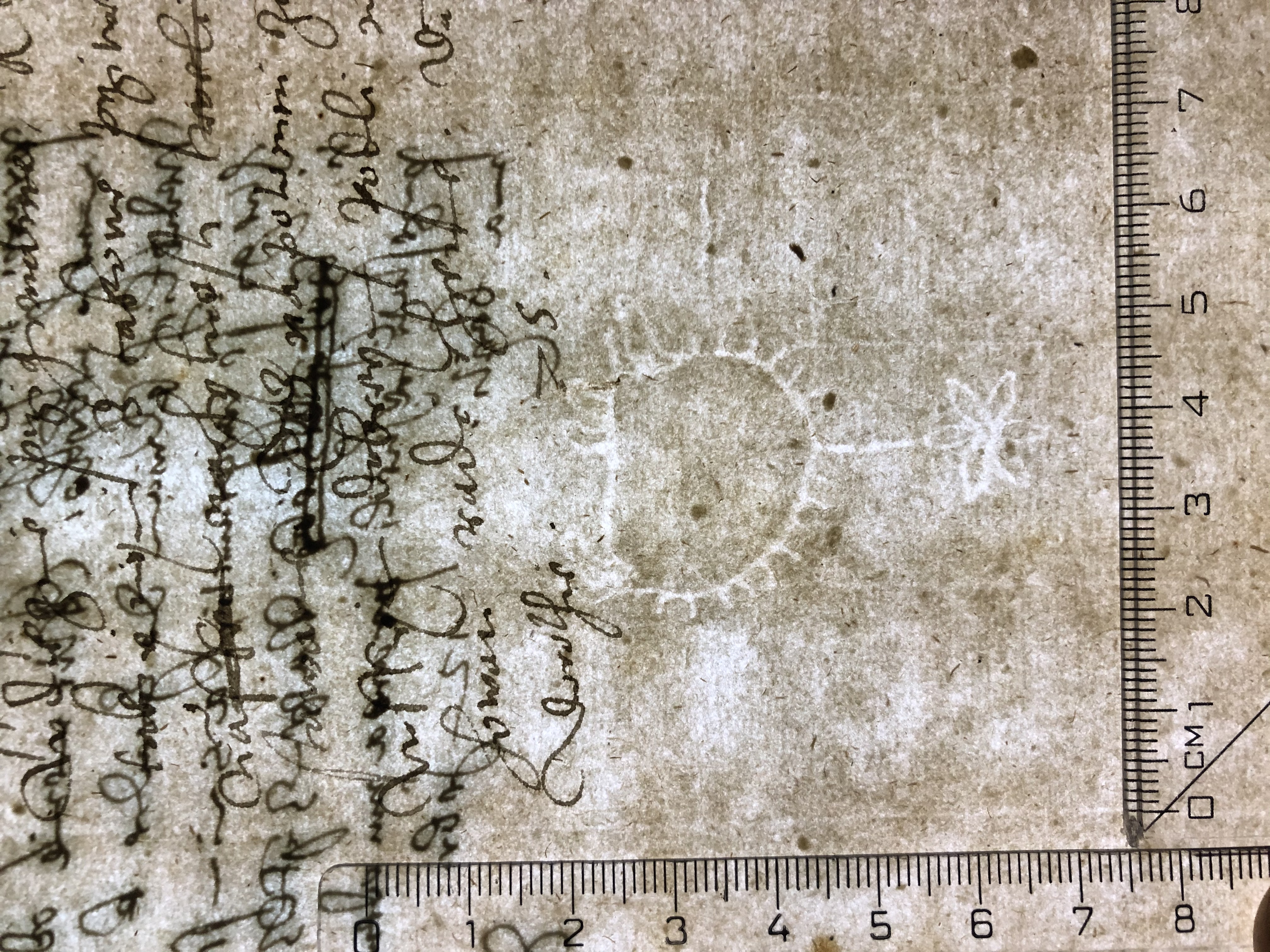 Identifier: 158 Description: hedgehog, six-leaf flower Height: 51 Width: 32 Chain line distance: 24 No. chain lines in sheet: 16+2 Distance side wire-chain line: 20 Depository: Státní okresní archiv (SOkA) Jihlava Shelfmark: AMJ do 1848, ÚKaR, inv.n. 337 Source: Czech Copybook Dating: 1574 Sheet dimension (cm): 31x42