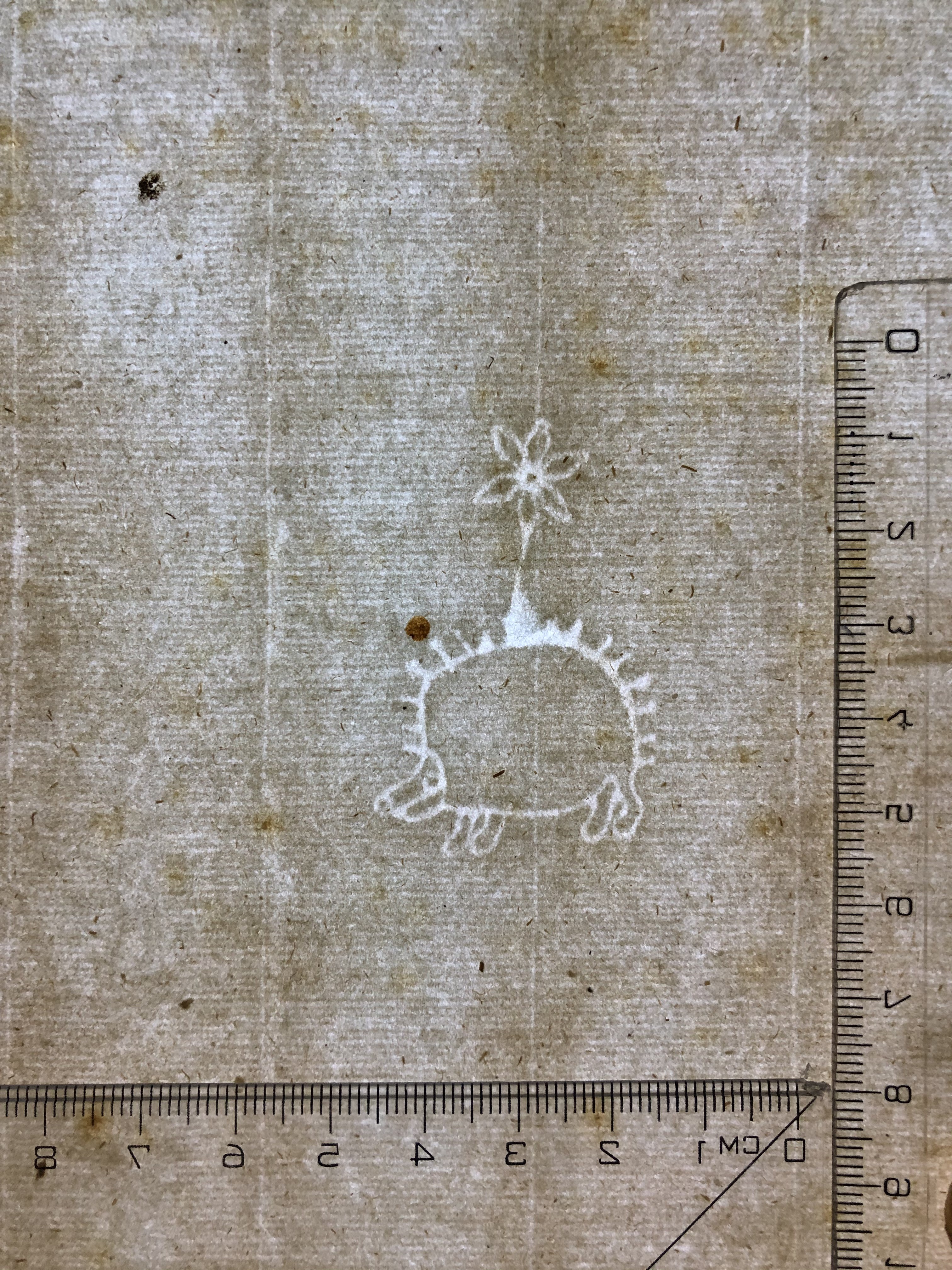 Identifier: 159_II Description: hedgehog, six-leaf flower Height: 47 Width: 31 Chain line distance: 28 No. chain lines in sheet: 14+2 Distance side wire-chain line: 13 Depository: Státní okresní archiv (SOkA) Jihlava Shelfmark: AMJ do 1848, ÚKaR, inv.n. 337 Source: Czech Copybook Dating: 1576 Sheet dimension (cm): 31x42