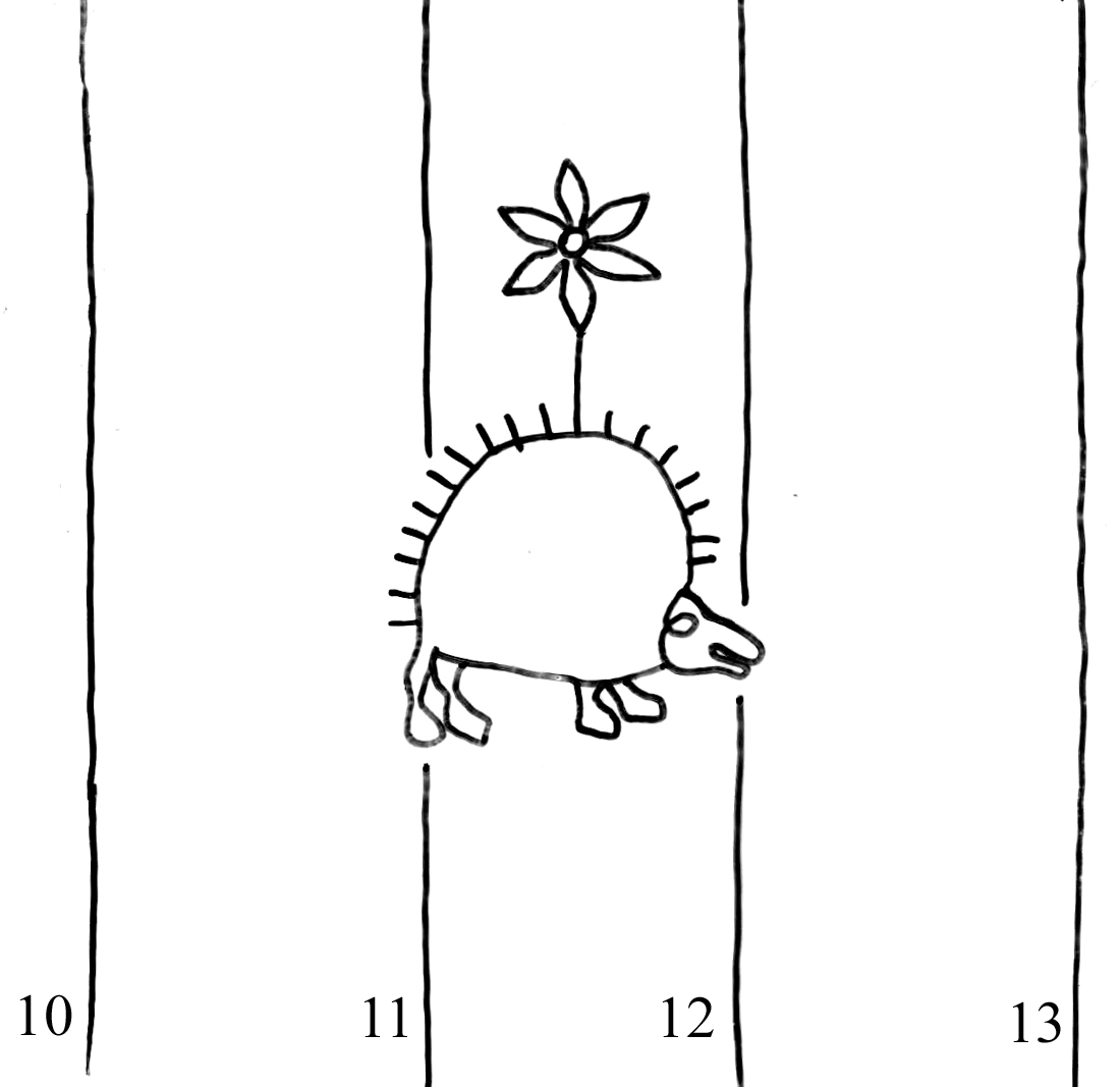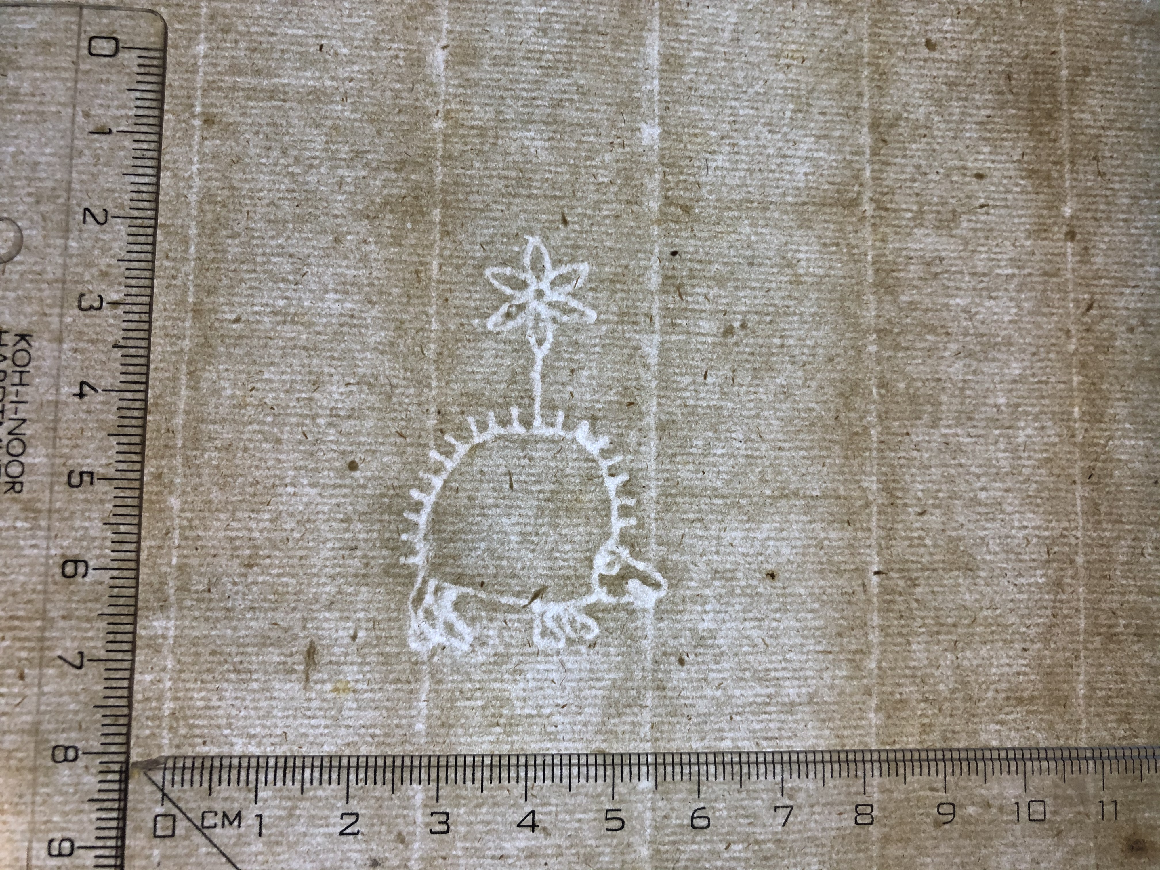 Identifier: 161_II Description: hedgehog, six-leaf flower Height: 49 Width: 32 Chain line distance: 27 No. chain lines in sheet: 14+2 Distance side wire-chain line: 20 Depository: Státní okresní archiv (SOkA) Jihlava Shelfmark: AMJ do 1848, ÚKaR, inv.n. 343 Source: German Copybook Dating: 1581 Sheet dimension (cm): 30x40