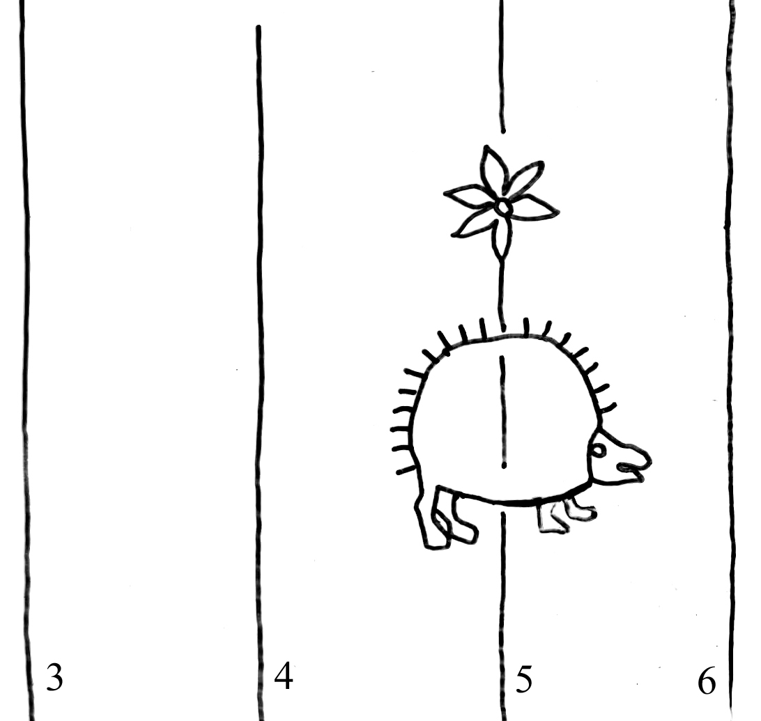 Identifier: 162_I Description: hedgehog, six-leaf flower Height: 49 Width: 32 Chain line distance: 28 No. chain lines in sheet: 14+2 Distance side wire-chain line: 20 Depository: Státní okresní archiv (SOkA) Jihlava Shelfmark: AMJ do 1848, ÚKaR, inv.n. 343 Source: German Copybook Dating: 1584 Sheet dimension (cm): 30x41