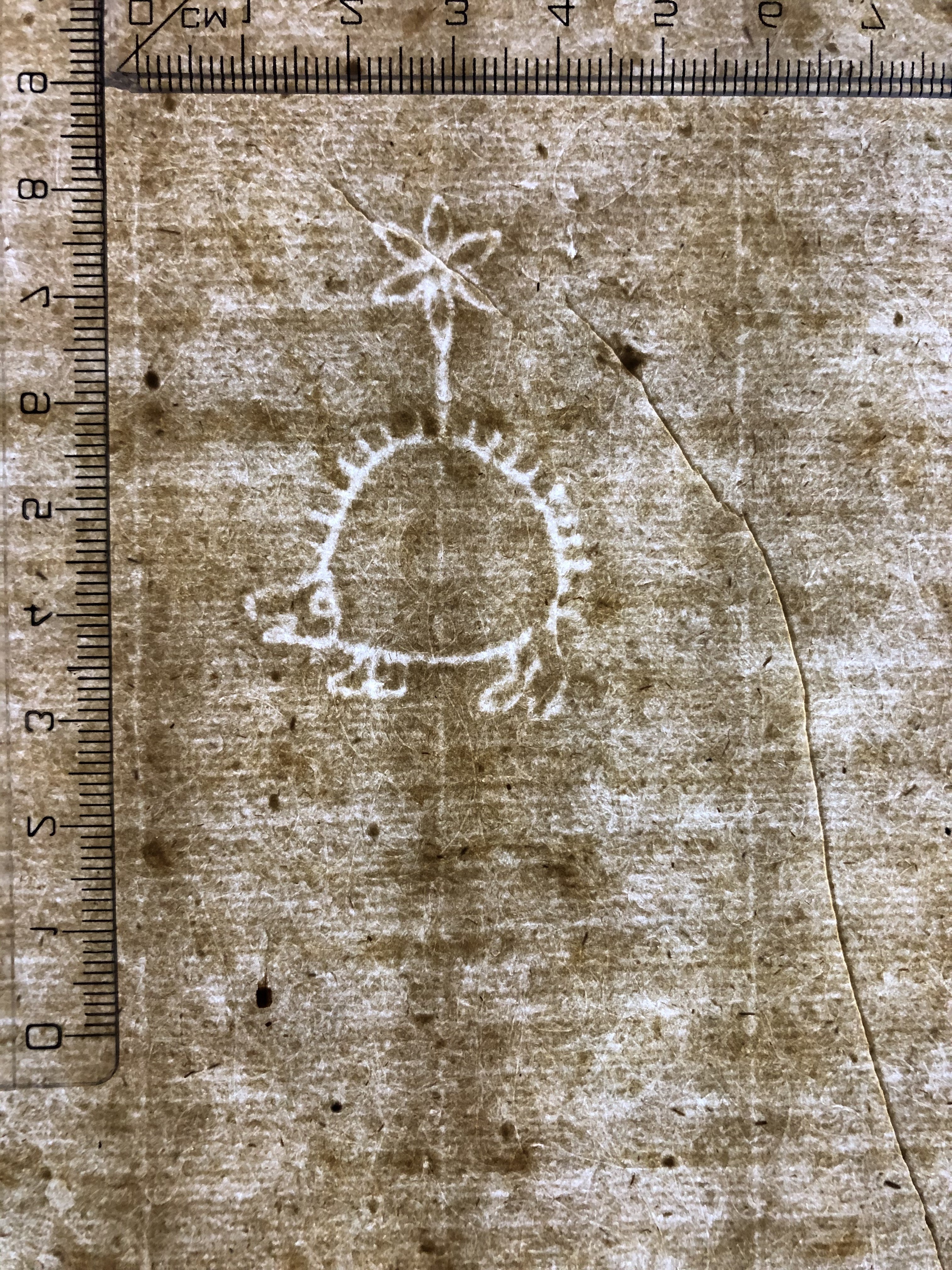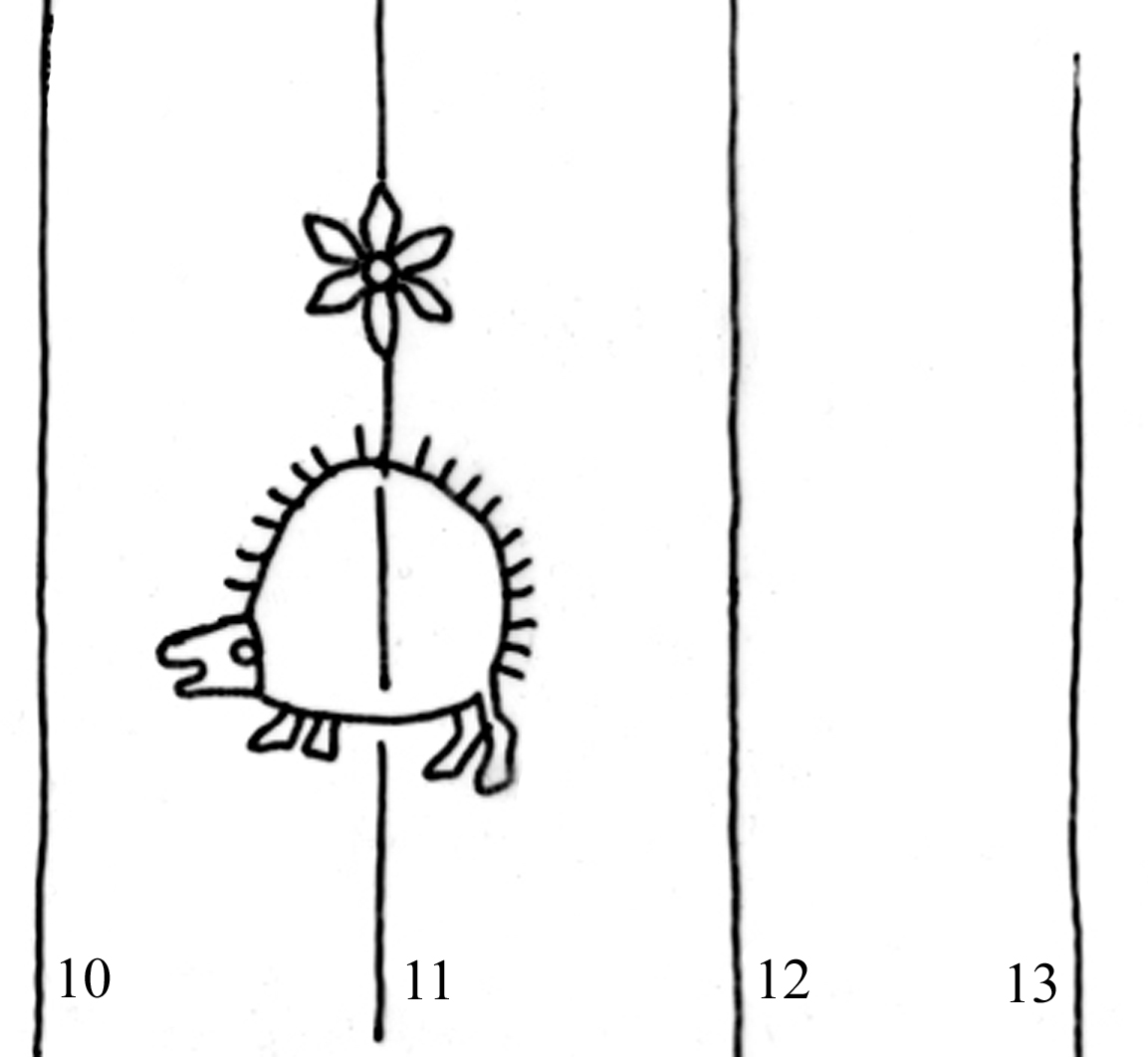 Identifier: 174_II Description: hedgehog, six-leaf flower Height: 52 Width: 33 Chain line distance: 28 No. chain lines in sheet: 14 Depository: Státní okresní archiv (SOkA) Jihlava Shelfmark: AMJ do 1848, ÚKaR, inv.n. 350 Source: Book of descriptions Dating: 1590 Sheet dimension (cm): 31x41