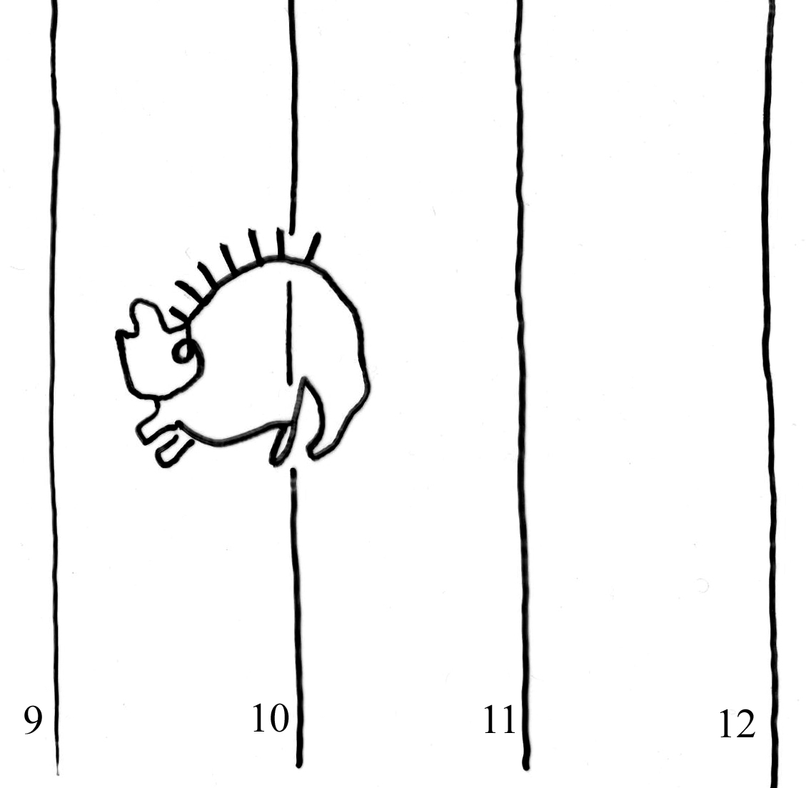 Identifier: 176 Description: hedgehog Height: 28 Width: 30 Chain line distance: 28 No. chain lines in sheet: 14+2 Distance side wire-chain line: 15 Depository: Státní okresní archiv (SOkA) Jihlava Shelfmark: AMJ do 1848, ÚKaR, inv.n. 338 Source: Czech Copybook Dating: 1577 Sheet dimension (cm): 29x40