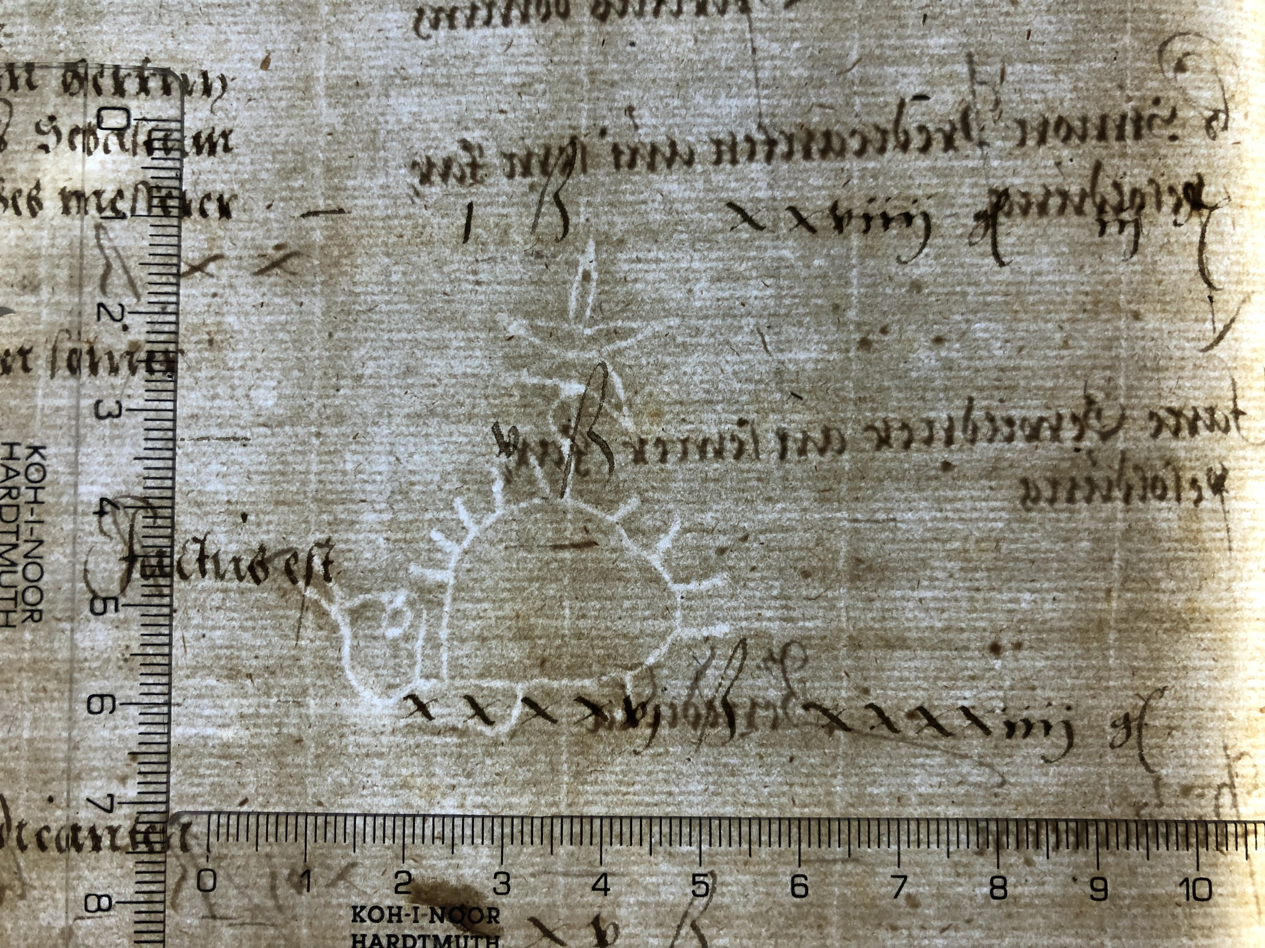 Identifier: 187_I Description: hedgehog, six-pointed star Height: 51 Width: 44 Chain line distance: 26 No. chain lines in sheet: 16+2 Distance side wire-chain line: 15 Depository: Státní okresní archiv (SOkA) Jihlava Shelfmark: AMJ do 1848, ÚKaR, inv.n. 66 Dating: 1562 Paper mill: Staré Hory, Jihlava Paper maker: Petr Frey Placement: a Sheet dimension (cm): 31,5x44