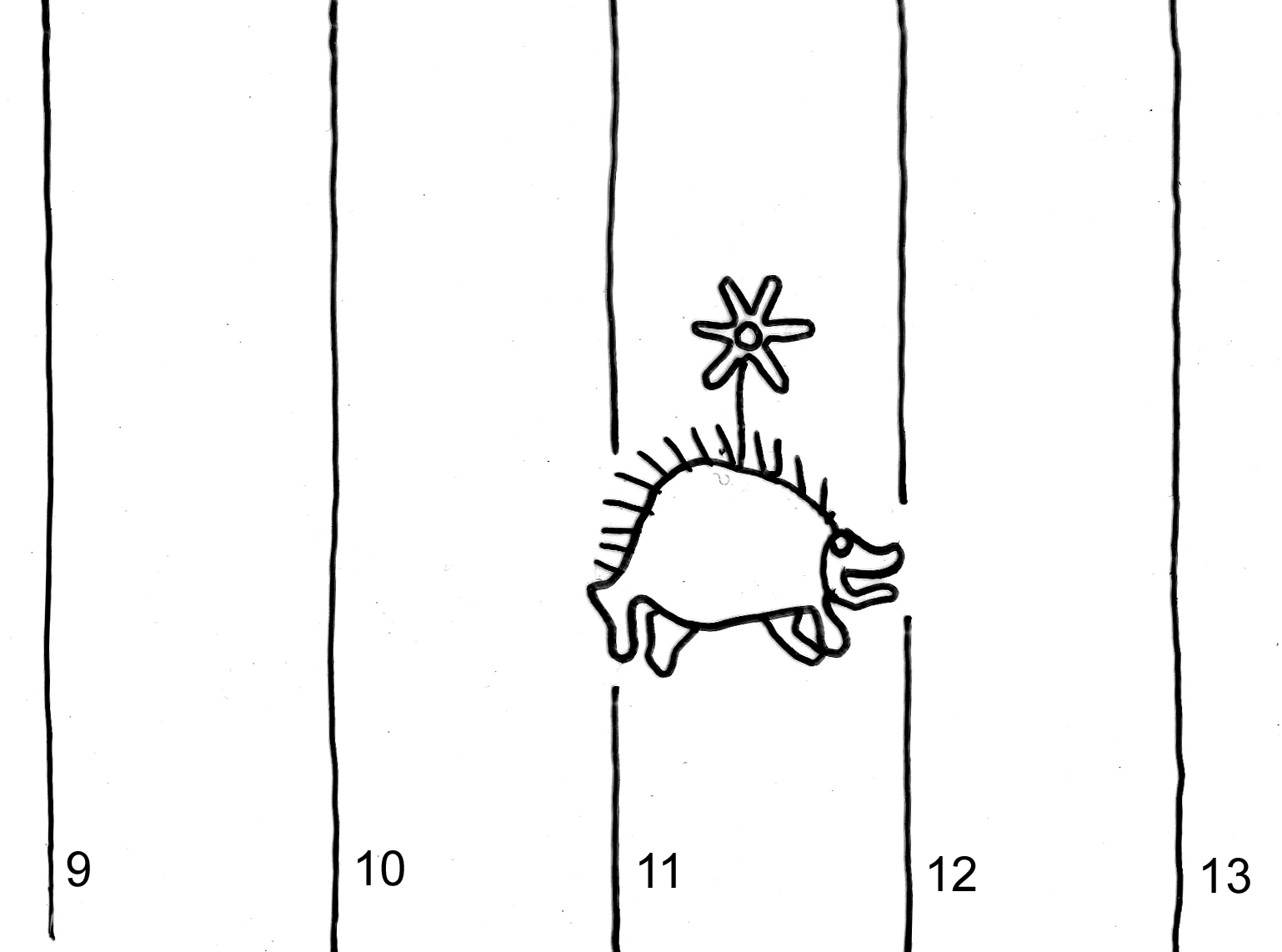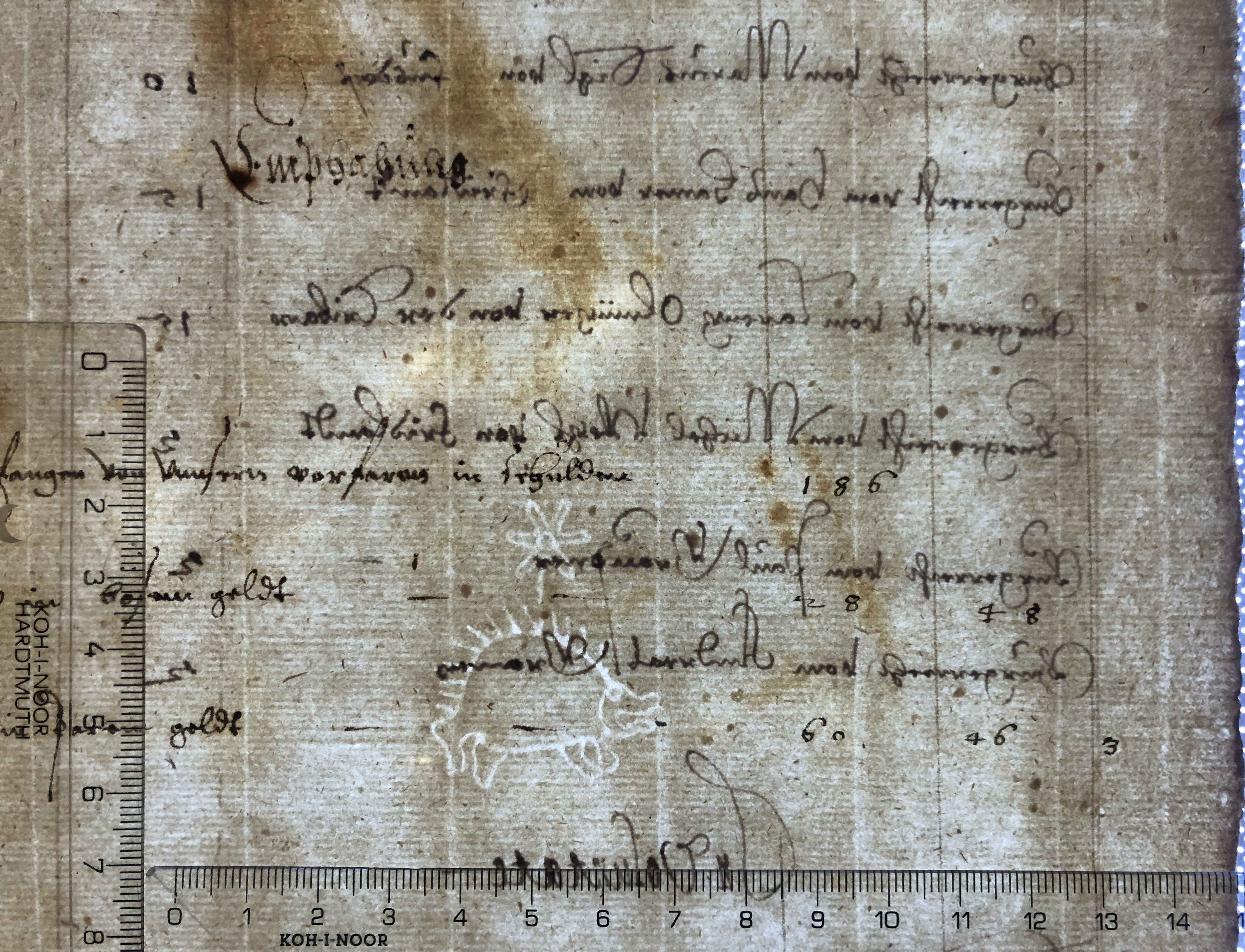 Identifier: 189_II Description: hedgehog, six-pointed star Height: 41 Width: 32 Chain line distance: 28 No. chain lines in sheet: 14+2 Distance side wire-chain line: 15 Depository: Státní okresní archiv (SOkA) Jihlava Shelfmark: AMJ do 1848, ÚKaR, inv.n. 70 Dating: 1582 Paper mill: Staré Hory, Jihlava Paper maker: Benedikt Frey Placement: a Sheet dimension (cm): 31,5x42,5