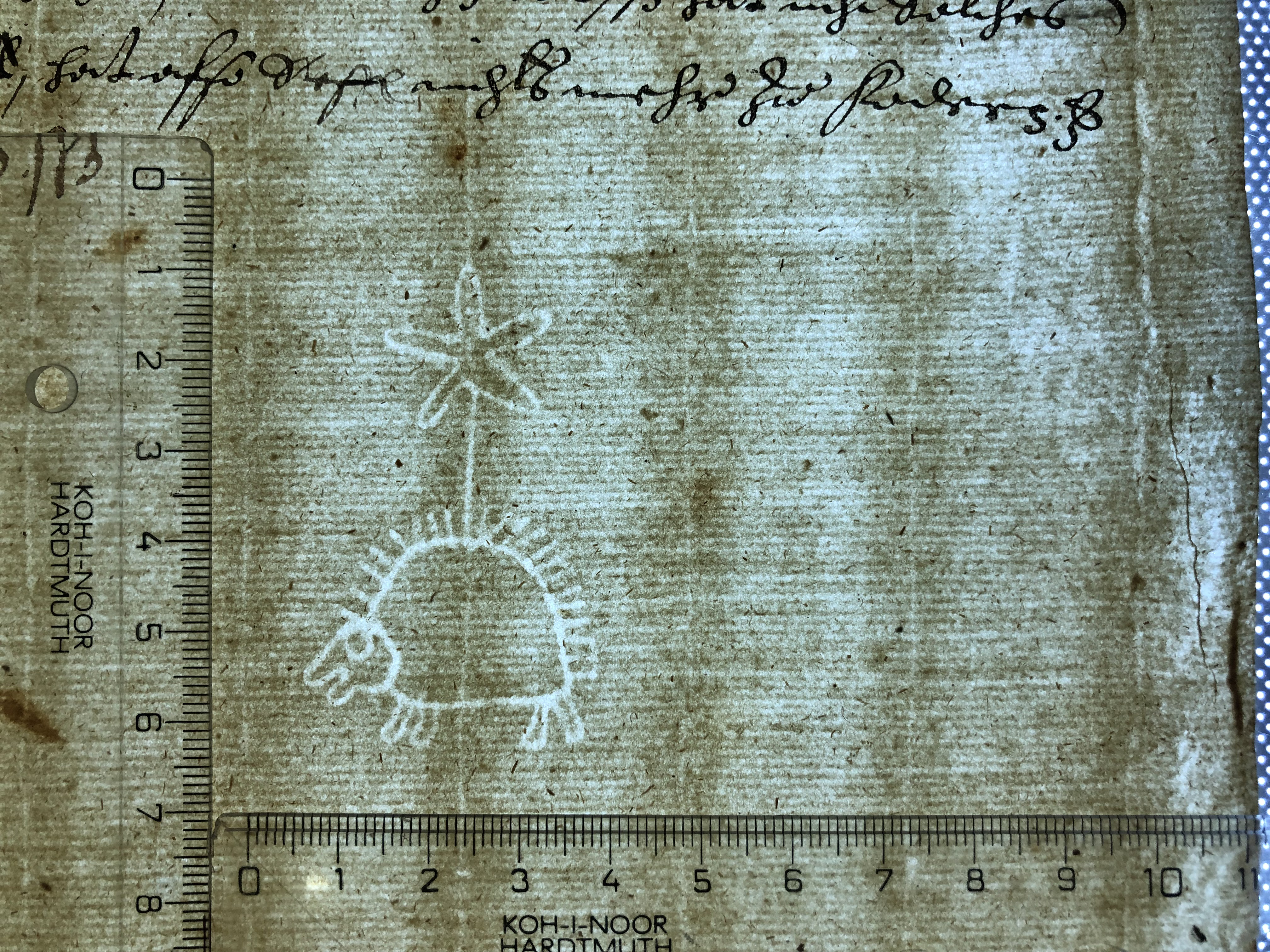Identifier: 191_II Description: hedgehog, five-pointed star Height: 55 Width: 32 Chain line distance: 25 No. chain lines in sheet: 16+2 Distance side wire-chain line: 13 Depository: Státní okresní archiv (SOkA) Jihlava Shelfmark: AMJ do 1848, ÚKaR, inv.n. 179 Dating: 1598 Paper mill: Staré Hory, Jihlava Paper maker: Benedikt Frey Placement: a Sheet dimension (cm): 34x41