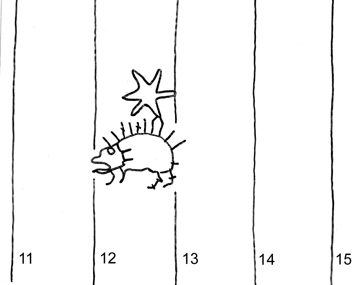 Identifier: 192 Description: hedgehog, six-pointed star Height: 38 Width: 30 Chain line distance: 25 Depository: Státní okresní archiv (SOkA) Jihlava Shelfmark: AMJ do 1848, ÚKaR, inv.n. 178 Dating: 1543 Paper mill: Staré Hory, Jihlava Paper maker: Petr Frey Placement: a