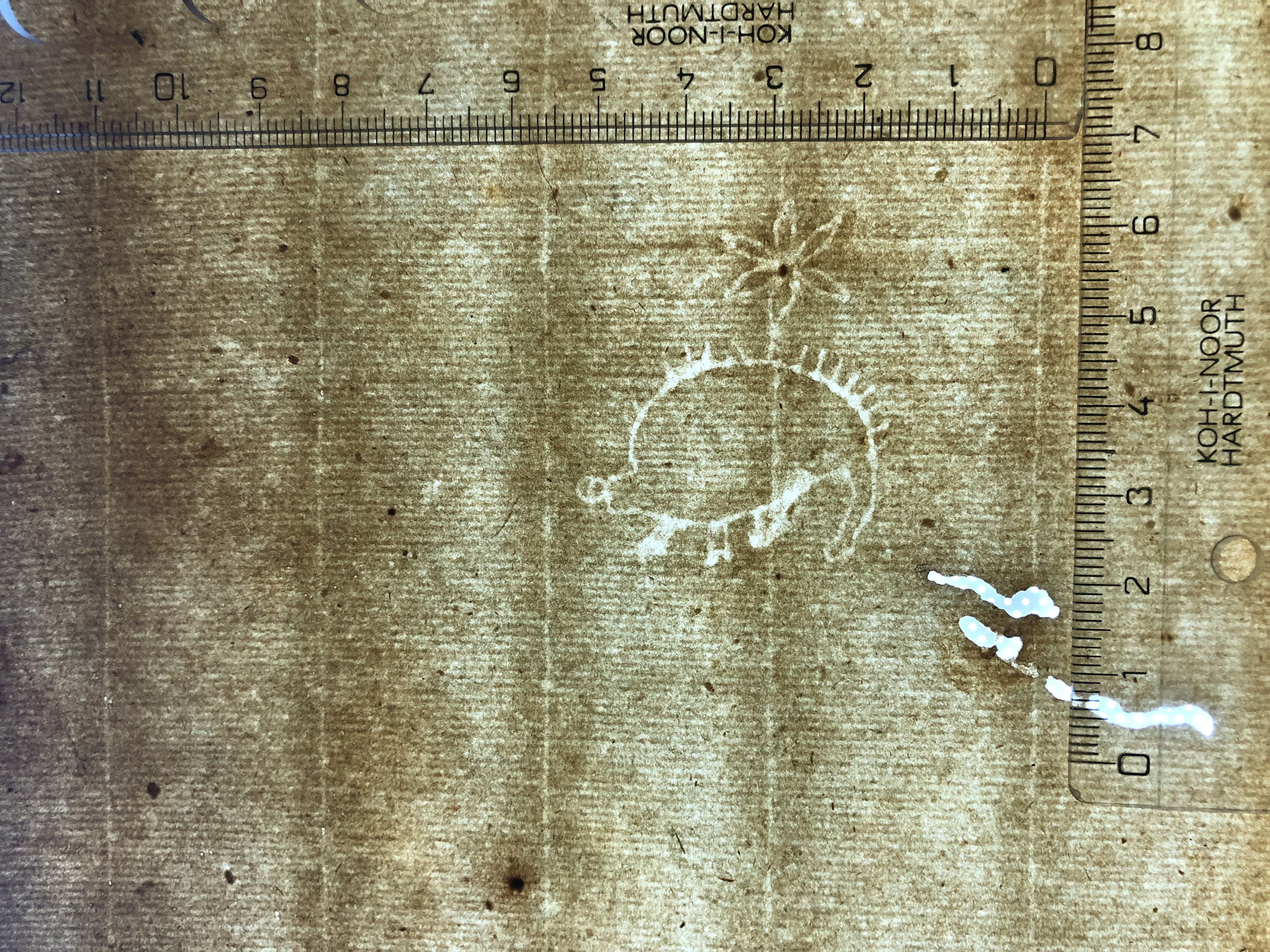 Identifier: 193_I Description: hedgehog, six-leaf flower Height: 44 Width: 37 Chain line distance: 28 No. chain lines in sheet: 14 Depository: Státní okresní archiv (SOkA) Jihlava Shelfmark: AMJ do 1848, VÚ, inv.n. 89 Dating: 1551 Paper mill: Staré Hory, Jihlava Paper maker: Petr Frey Placement: a Sheet dimension (cm): 30x40,5