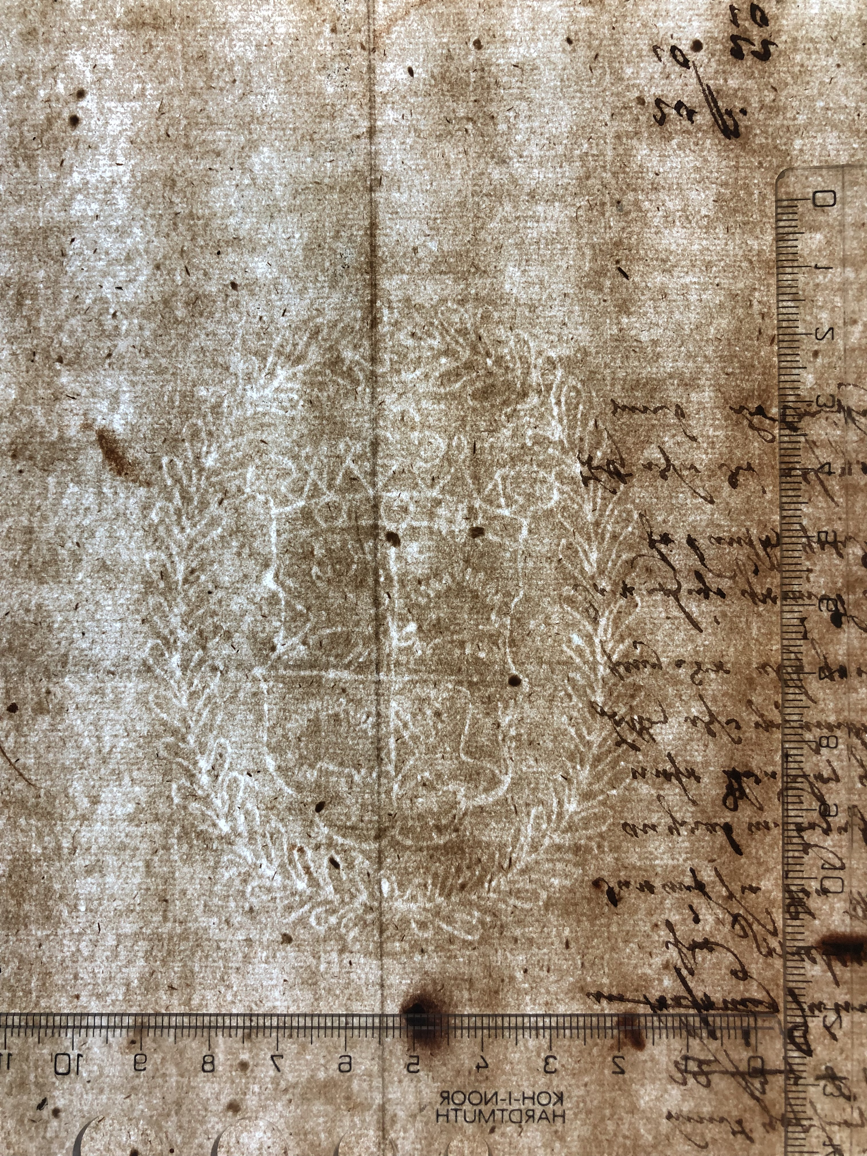 Identifier: 200 Description: coat of arms, hedgehog and bohemian lion Height: 95 Width: 74 Chain line distance: 21 No. chain lines in sheet: 18 Distance side wire-chain line: 14 Depository: Státní okresní archiv (SOkA) Jihlava Shelfmark: AMJ do 1848, VÚ, inv.n. 90 Dating: 1648 Paper mill: Staré Hory, Jihlava Paper maker: Daniel Frey Placement: c Sheet dimension (cm): 33x41