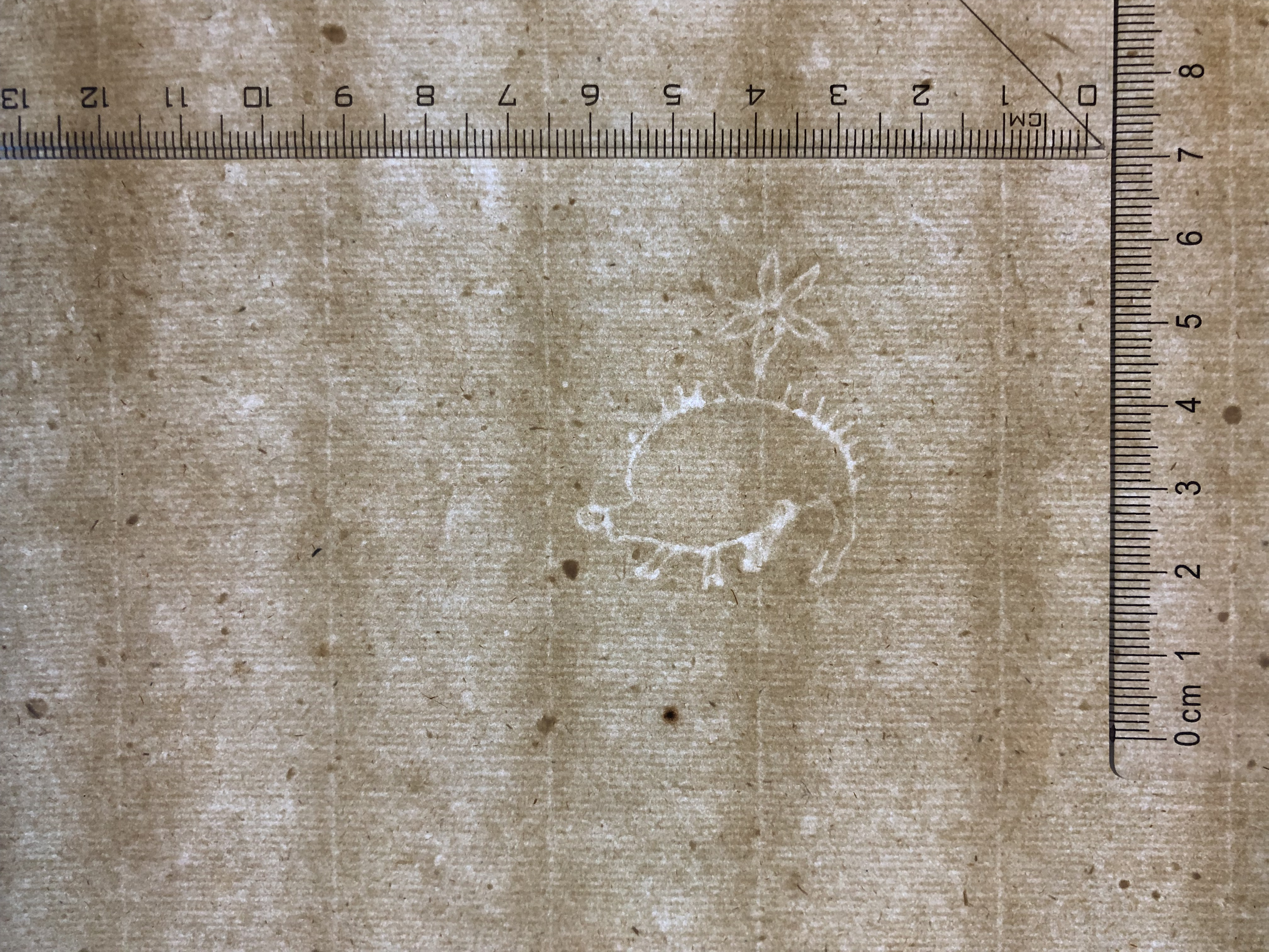 Identifier: 203_I Description: hedgehog, six-leaf flower Height: 42 Width: 36 Chain line distance: 28 No. chain lines in sheet: 14* Depository: Státní okresní archiv (SOkA) Jihlava Shelfmark: AMJ do 1848, VÚ, inv.n. 91 Dating: 1621 Paper mill: Staré Hory, Jihlava Paper maker: Pavel Frey Placement: a Sheet dimension (cm): 30,5x40