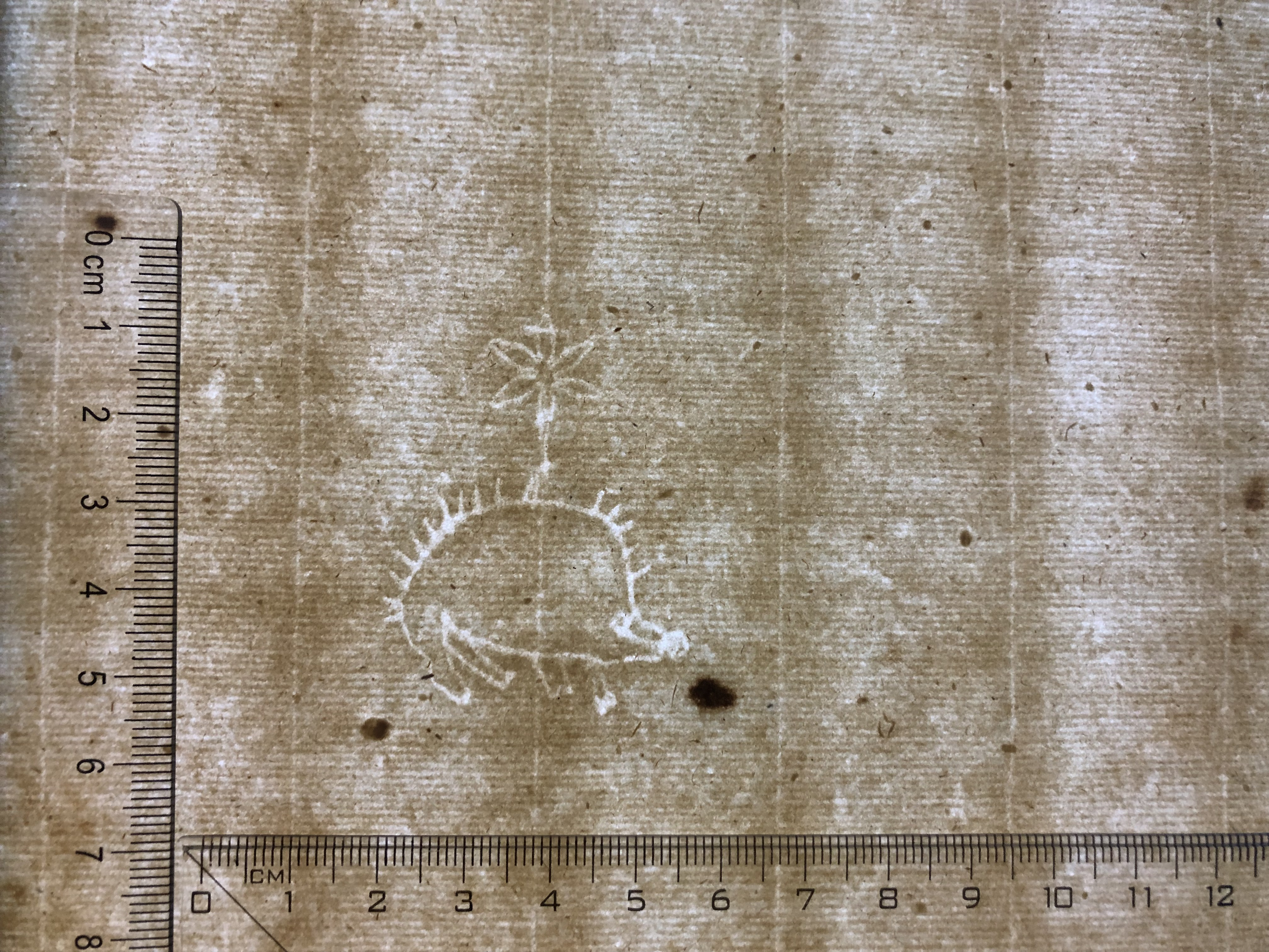 Identifier: 203_II Description: hedgehog, six-leaf flower Height: 48 Width: 36 Chain line distance: 28 No. chain lines in sheet: 14* Depository: Státní okresní archiv (SOkA) Jihlava Shelfmark: AMJ do 1848, VÚ, inv.n. 91 Dating: 1621 Paper mill: Staré Hory, Jihlava Paper maker: Pavel Frey Placement: a Sheet dimension (cm): 30,5x40