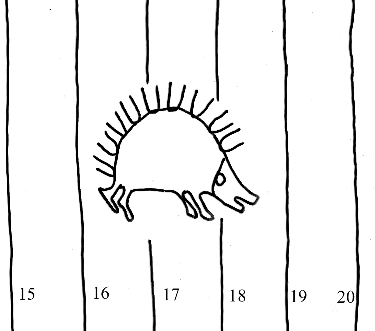 Identifier: 228_II Description: hedgehog Height: 39 Width: 45 Chain line distance: 19 No. chain lines in sheet: 22+2 Distance side wire-chain line: 17 Depository: Státní okresní archiv (SOkA) Jihlava Shelfmark: AMJ do 1848, SR, I2, 1657 Dating: 1657 Paper mill: Staré Hory, Jihlava Paper maker: Daniel Frey Placement: a Sheet dimension (cm): 32x40