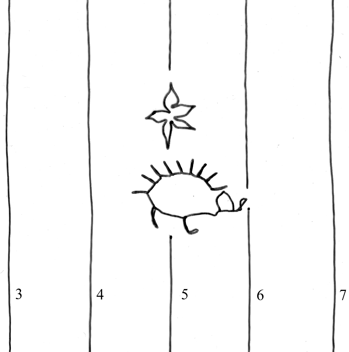 Identifier: 264 Description: hedgehog, six-pointed star Height: 53 Width: 40 Chain line distance: 28 No. chain lines in sheet: 7*+1* Distance side wire-chain line: 18 Depository: Státní okresní archiv (SOkA) Jihlava Shelfmark: AMJ do 1848, SR, I7, 1568 Dating: 1568 Paper mill: Staré Hory, Jihlava Paper maker: Benedikt Frey Placement: a Sheet dimension (cm): 32x21,5