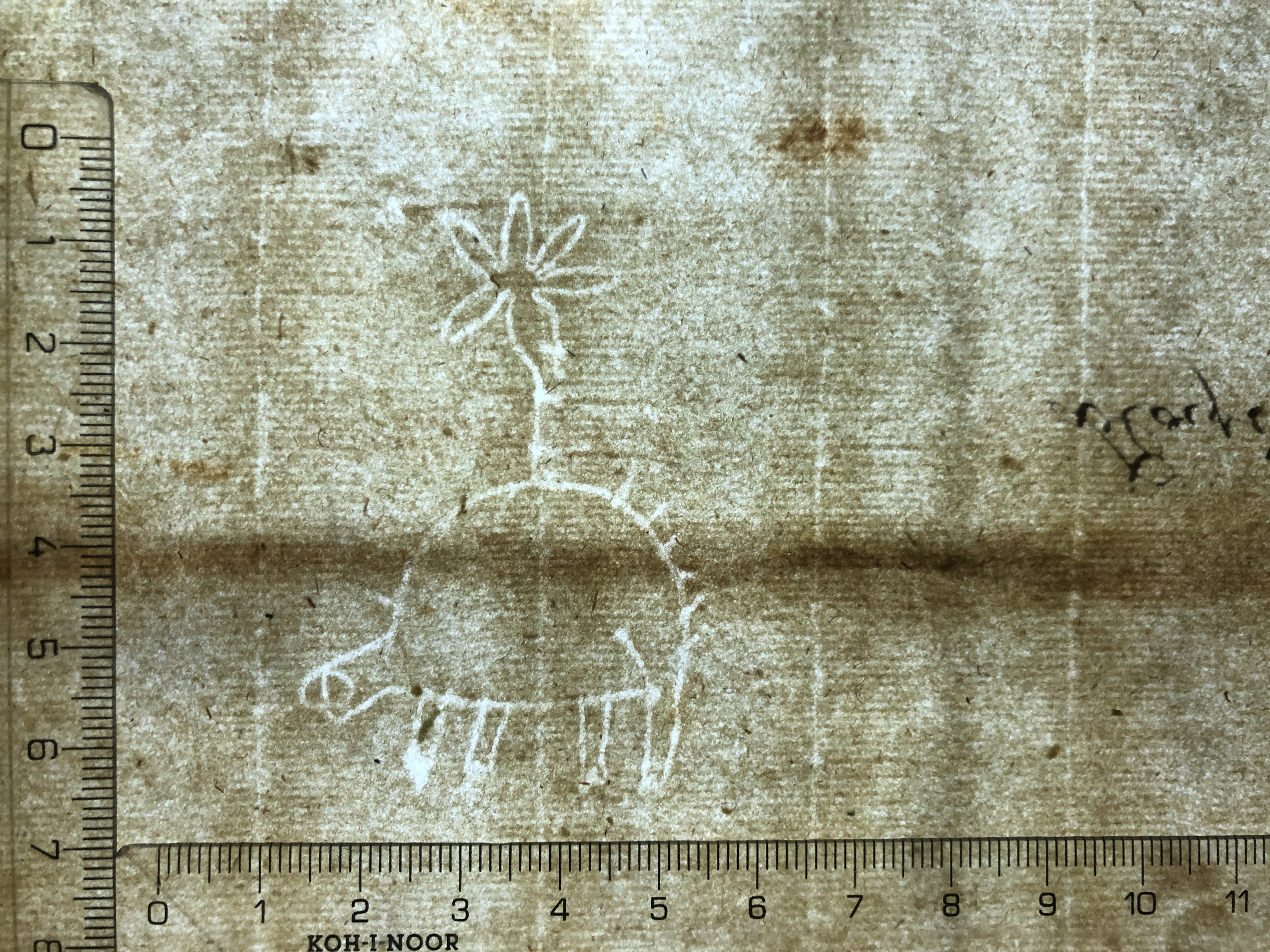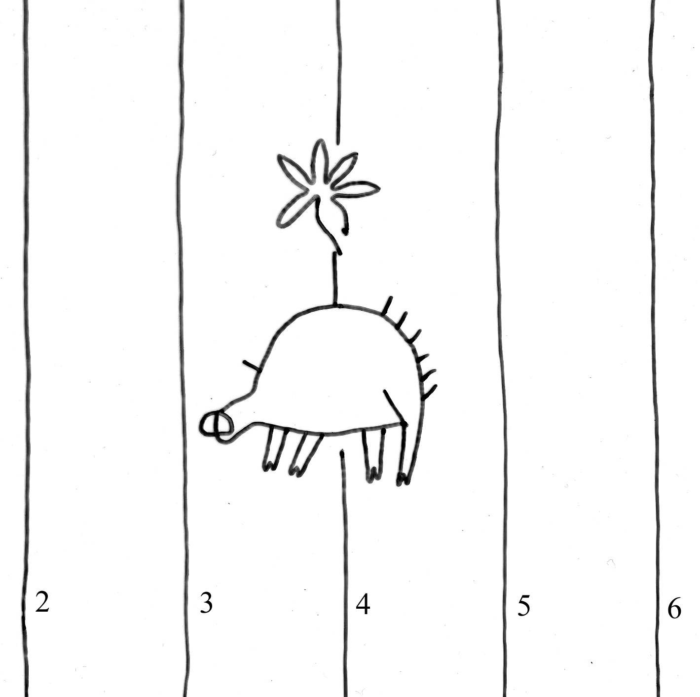 Identifier: 266 Description: hedgehog, six-leaf flower Height: 59 Width: 45 Chain line distance: 28 No. chain lines in sheet: 14+2 Distance side wire-chain line: 19 Depository: Státní okresní archiv (SOkA) Jihlava Shelfmark: AMJ do 1848, SR, I7, 1565 Dating: 1565 Paper mill: Staré Hory, Jihlava Paper maker: Petr Frey Placement: a Sheet dimension (cm): 32x43